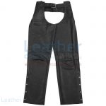 Top features of Soft cowhide leather. Side waist stretch panels for comfortable fit. Removable neck wind flap. 4 outside pockets. Safety stitch.
