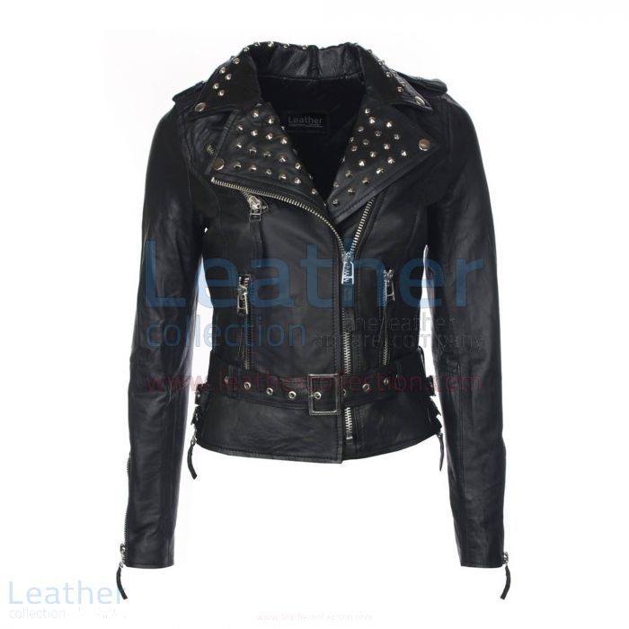 Womens Studded Collar Biker Leather JacketAn exclusive design of womens studded collar biker leather jacket with awesome details on shoulders and sleeves. It is constructed from Nappa Sheepskin. Gone through various tests for reliability, quality and durability. Get it for a modest price.