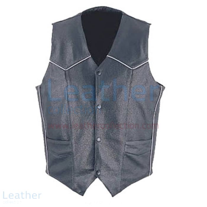 uno squisito progettati uomo classico pelle gilet tubazioni bianco avendo caratteristiche particolari come quattro pulsanti sul davanti, due tasche anteriori laterali, due tasca interna, pizzo laterale regolabile. questo gilet classico è realizzato in pelle premium.