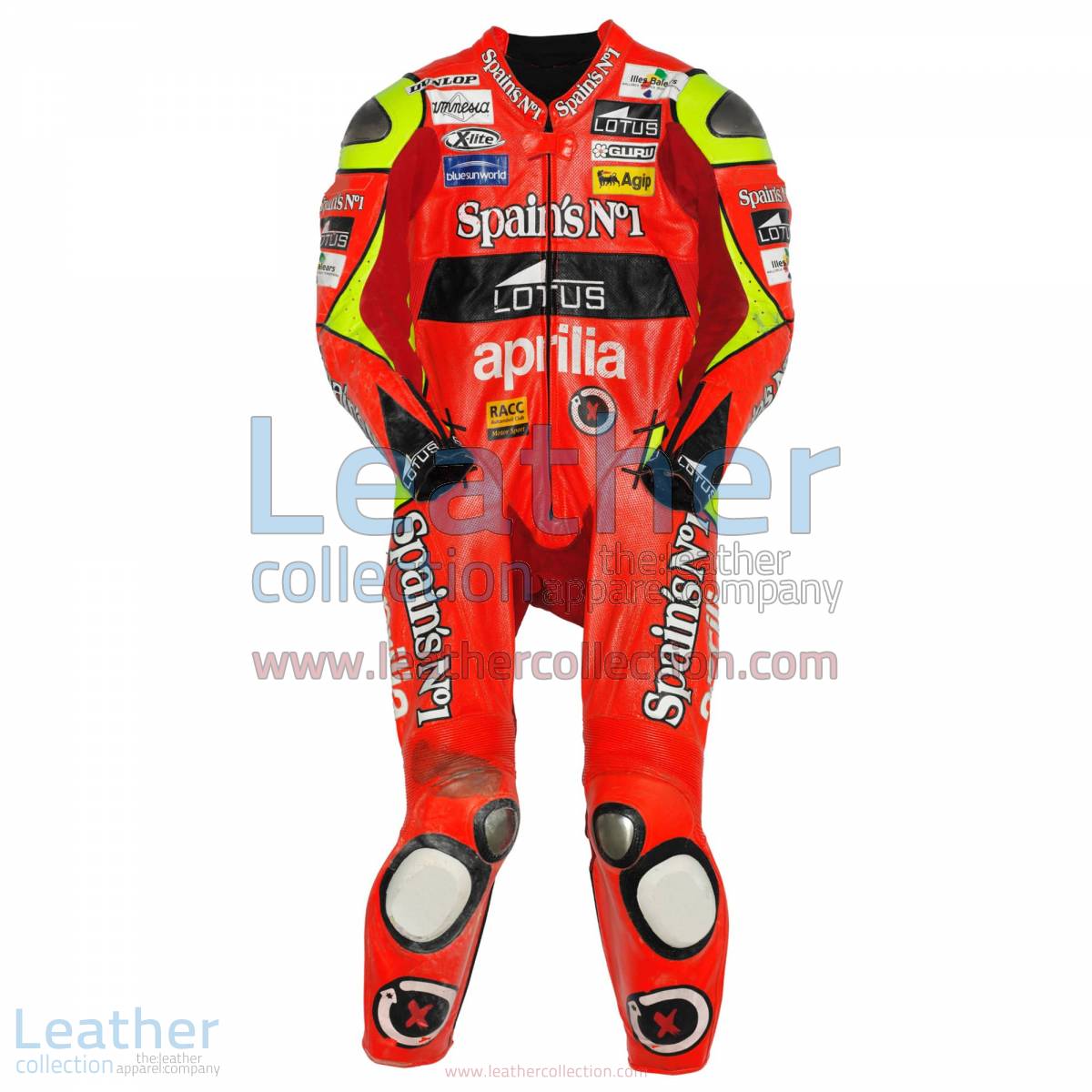 Jorge Lorenzo Aprilia GP 2007 leather suit. This article is designed under the special supervision of the experts. Making your ride startling. Providing the safety and comfort in the best way possible. Jorge Lorenzo wore this in 2007.