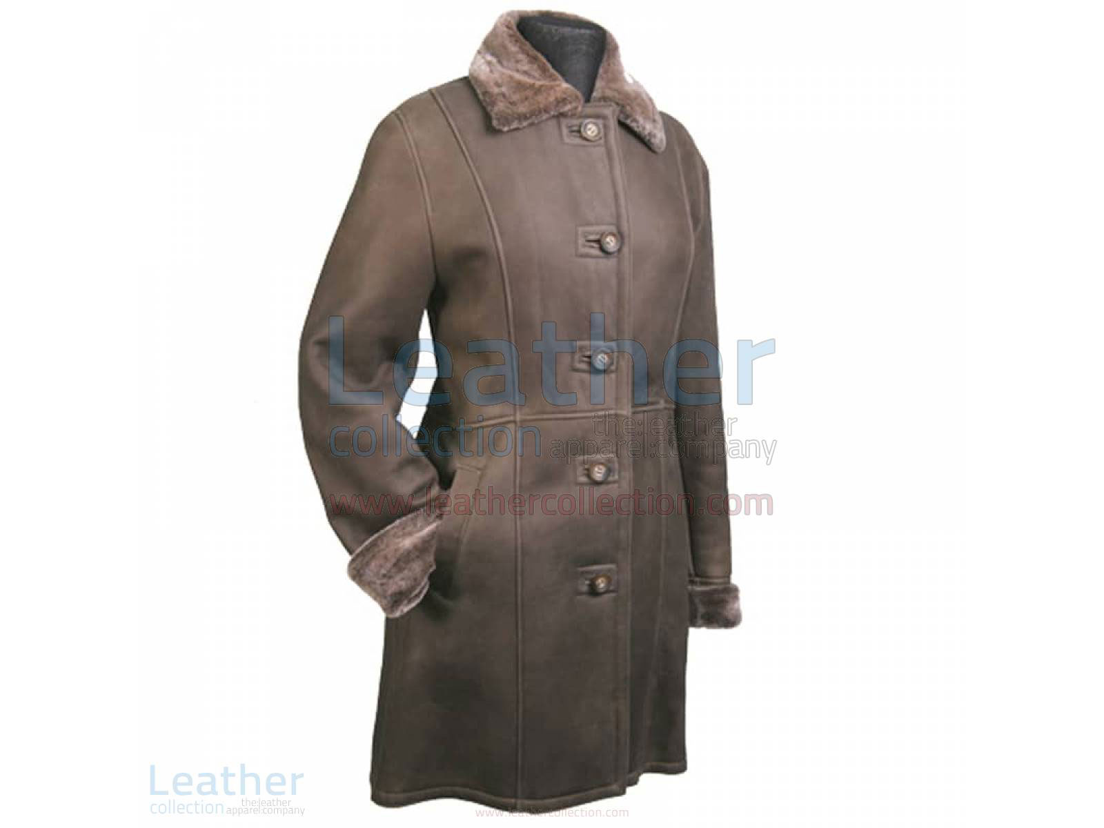 fur lined coat, long coat, Long Leather Fur lined Coat
