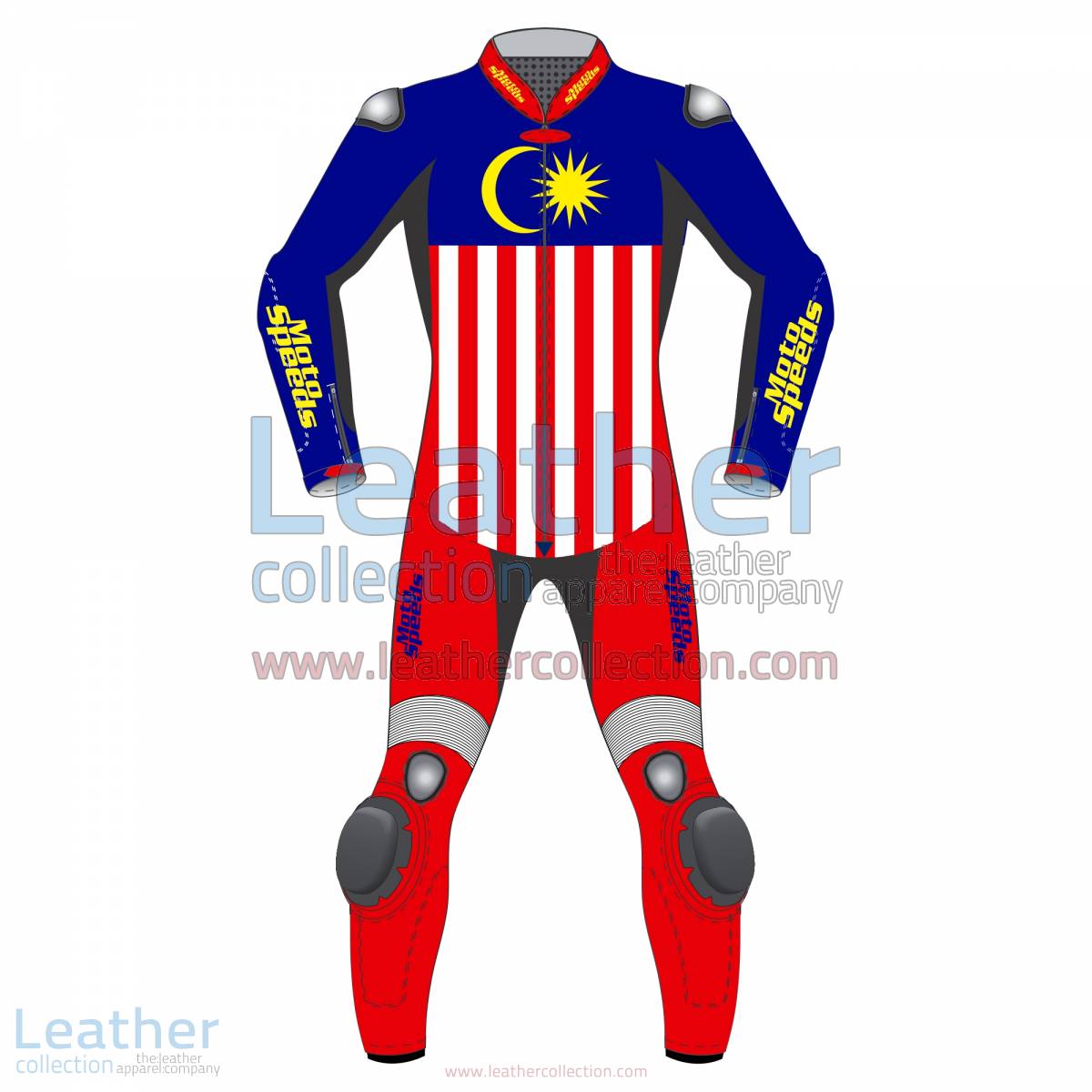 Malaysia flag leather motorbike suit, A one of the patriotic designed motorcycle suit with promising extra modified features related to protection from accidental abrasions and cuts. Leather suit is made under proper supervision keeping the comfort and safety of the rider in mind.