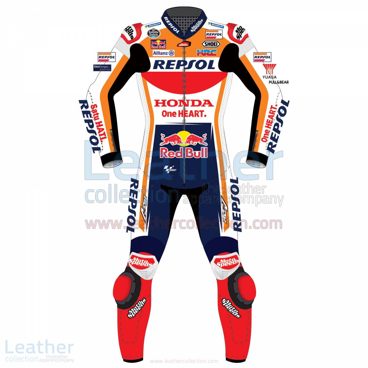 Specially designed race leather suit of Marc Marquez, which he wore in the MotoGP 2018 season when he takes part with the official Honda Repsol team.