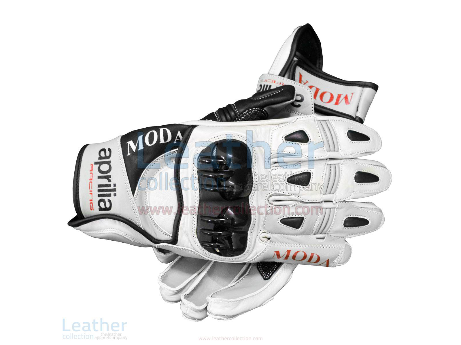 Aprilia Short Leather Riding Gloves Main Features: Full-grain leather construction. Rubber protector with air intakes and exhaust. Pre-curved palm and fingers. Velcro cuff wrist closure. Safety stitch.
