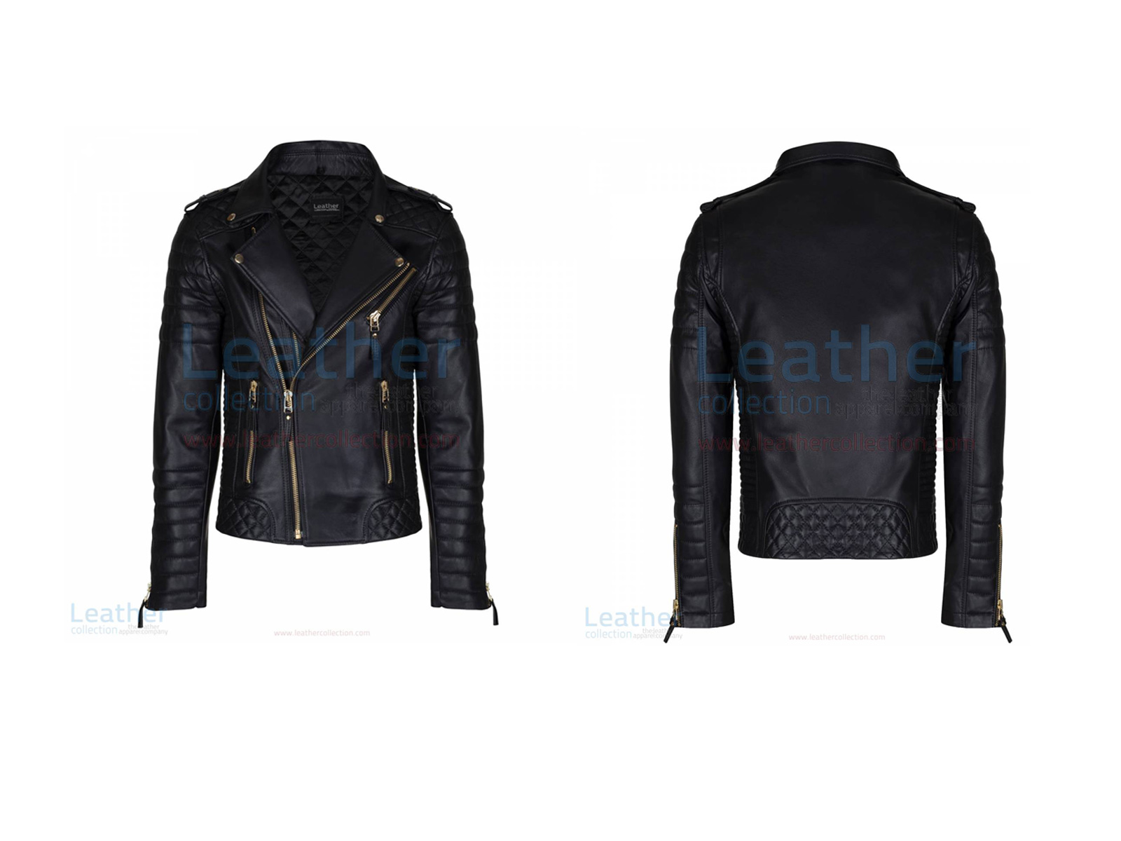 Continue readingQuilted mens black leather moto jacket with golden hardware featuring ribbed detail on shoulders and sleeves. It is constructed from nappa sheepskin. Gone through various tests for reliability, quality and durability.