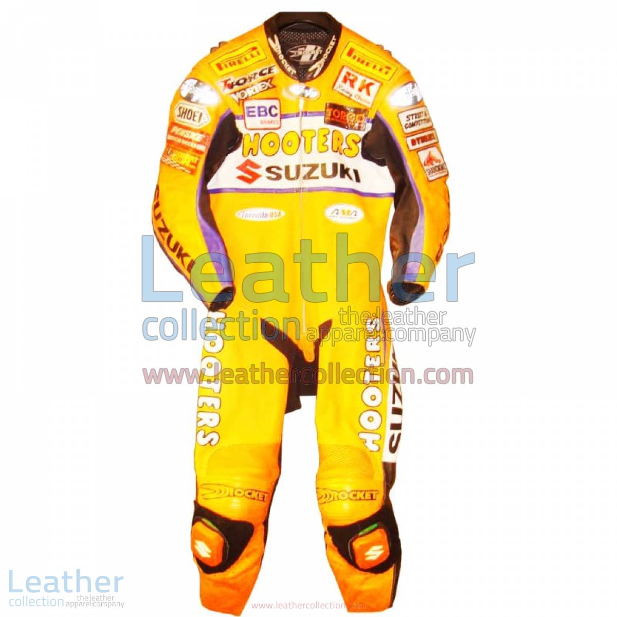 A specially designed fabulous Suzuki apparel, providing the best of what a racer or any rider can need. Larry Pegram wore these motorcycle leathers to participate in AMA race for Suzuki. This suit is really helping maintaining and improving the motorbike riding experience.