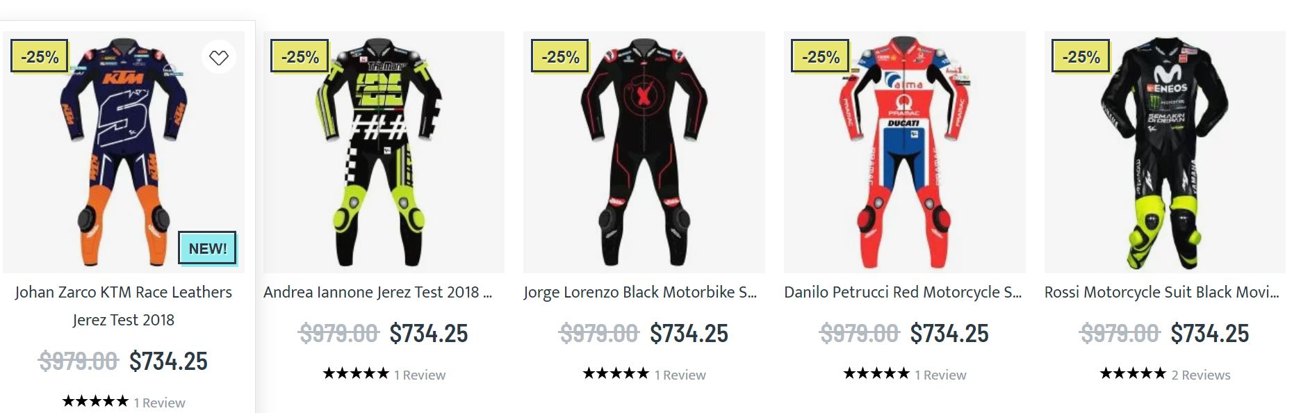 Explore the great collection of MotoGP Racing Suit of 2018 Valentino Rossi, Marc Marquez, Andrea Dovizioso, Andrea Iannone, and other MotoGP riders. Who is your favorite rider pay tribute to him in a different way? All the rider’s replica suits are available in Kangaroo and Cow leathers, offering excellent abrasion, tear and cut resistance, equipped with CE Level 2 rated safety armor, pre-curved pattern arrangement ensures proper riding position and comfort. The suits are perfect for track and street races and we deliver all around the globe.